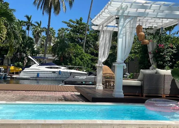 Para aproveitar as suas ferias em Miami, fique no o D' Mauchi Waterfront House Apartamento Miami de 214 m², que está a aproximadamente 25 minutos a pé de Tribunal do Condado de Miami-Dade e a uma distância de 3.5 km de Tamiami Trail. Este apartamento de 3 quartos tem terraço com piscina, com vista para a piscina.